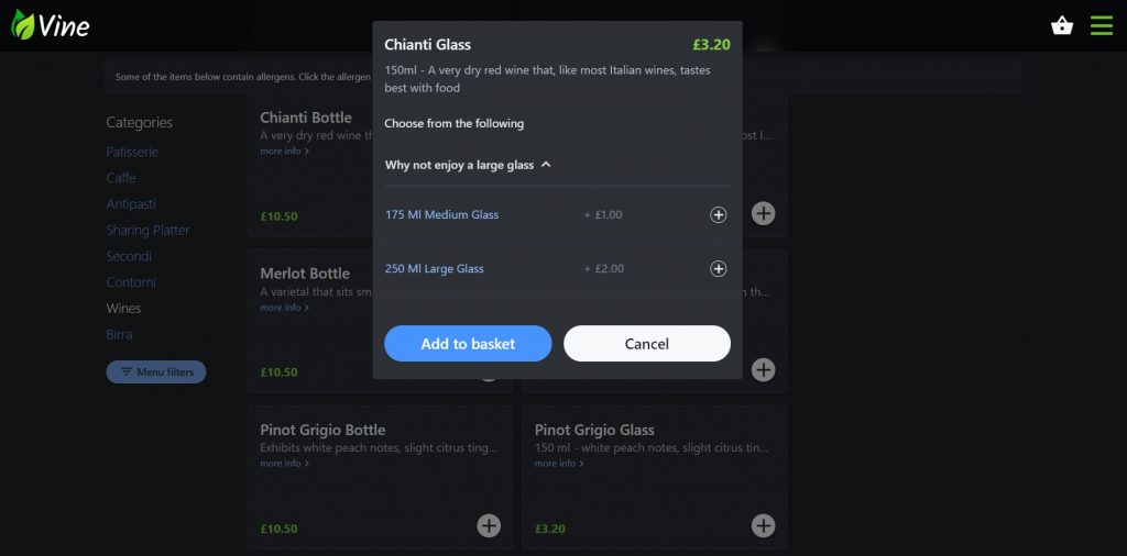 Menu Modifiers Posted on 4 August 20205 August 2020 by Tim Richards Vine self order app includes menu modifiers. Putting digital menus with add on options in the hands of your guests increases average order value.